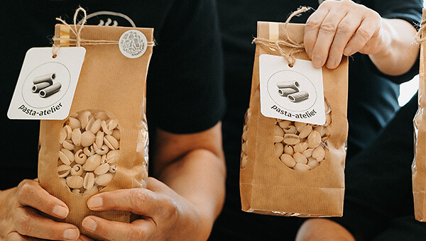 Mittlerweile umfasst das Sortiment der erhältlichen Pasta die Formen «Fusili» und «Gnochetti Sardi» – wir sind bereits am tüfteln, dass weitere Sorten bald erhältlich sein werden. Ergänzend dazu verschiedene hausgemacht Saucen von «Pomodoro» über «Arrabiata» bis hin zu einem «Auberginen-Nuss-Pesto».